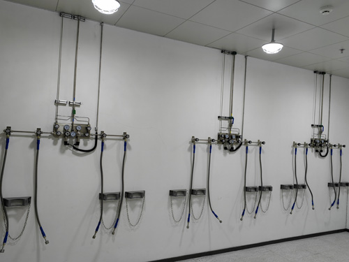 7.氣瓶間內存貯的氣瓶采取帶防倒鏈的氣瓶托架加固,氣瓶托架質量好質量好、整潔大膽。氣瓶托架采取鋁鉛合金制做而成。