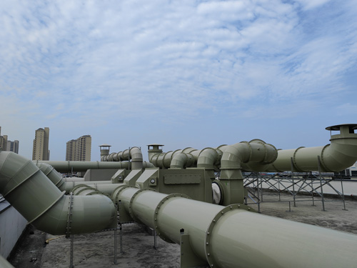 實驗報告室的廢氣 → 化學活化炭濾過器 → 引軸流式風機 → 產生